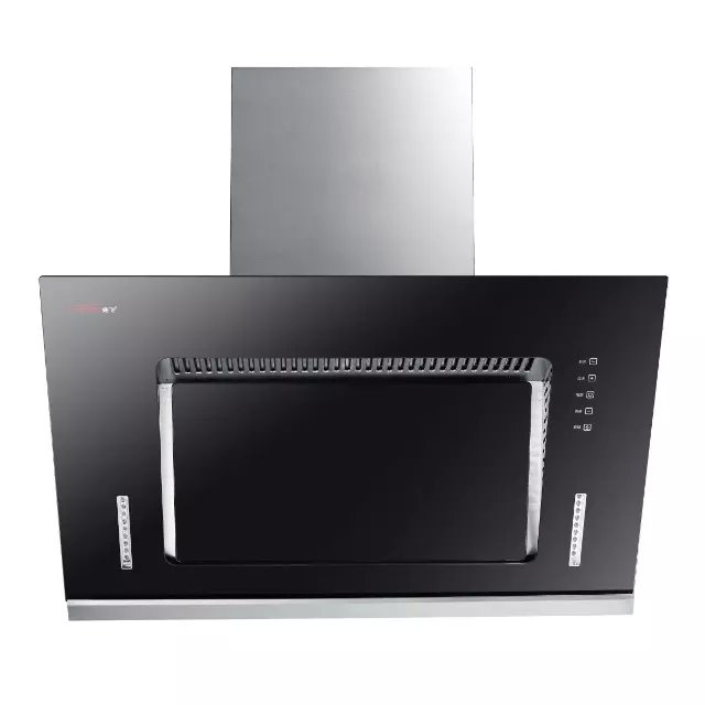 产品简介:外凸式导烟板设计,有效增强笼烟效果;导烟板可拆洗,便于打理与清洁;下置式单电机,三速电脑触摸开关,一级能效。(照片04)
