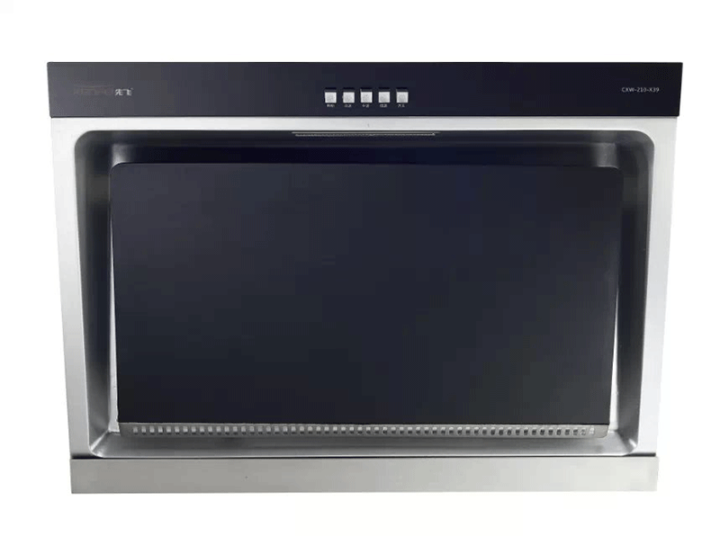 产品简介:全封闭28叠铜芯电机,加厚钢化弧形玻璃,有效增强笼烟效果;机械控制开关,一级能效。(照片09)