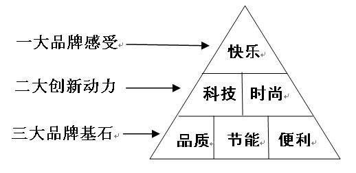快乐,是先飞品牌多年的精华沉淀,是先飞品牌的精髓所在,是先飞品牌向客户所让渡的核心价值。快乐是客户对先飞品牌情感升华后的一大品牌感受,另外先飞品牌还有二大创新动力:科技与时尚;三大品牌基石:品质、节能与便利,共同构成了先飞品牌123定位。