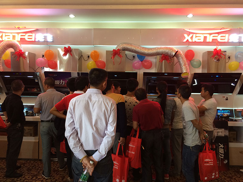 会场重点陈列了先飞14米超越版展柜,气势宏伟。先飞秋季烟机新品X50 X53 X56 X52 X51等非常受欢迎。先飞全线净水器产品更是频频被围观咨询,当拆开净水器看到先飞采用的优质加压泵、各种优质滤芯后,大家更加信心十足。先飞嵌入式烤箱蒸炉作为厨房新贵,被给予了极高的关注度。
