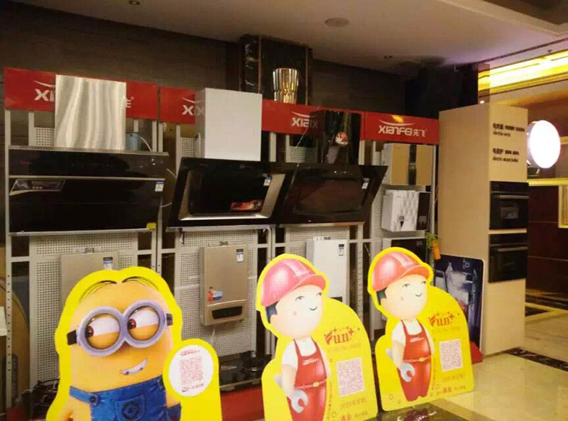 先飞电器此次参会,不仅展示了先飞的烟机、灶具、热水器等传统的厨房电器产品,还展示了2015年热销市场的嵌入式电蒸箱、电烤箱,净水器系列产品。先飞展台经过成都先飞团队精心布展,终端灯箱引人注目,互联网+元素充分体现。(08 09 10)