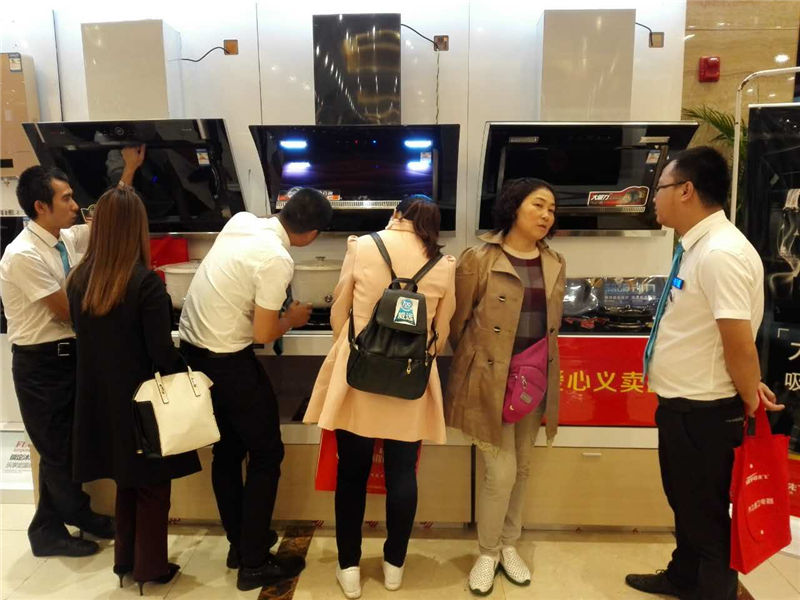 展厅里错落有致地分布着烟机、灶具、热水器几个不同展区,经销商们纷纷鱼贯而入,奔着自己感兴趣的产品去。本次先飞厨卫重磅推出的油烟分离烟机,真正保证烟机持久吸力,充分满足消费者对烟机美观与实用的需求。