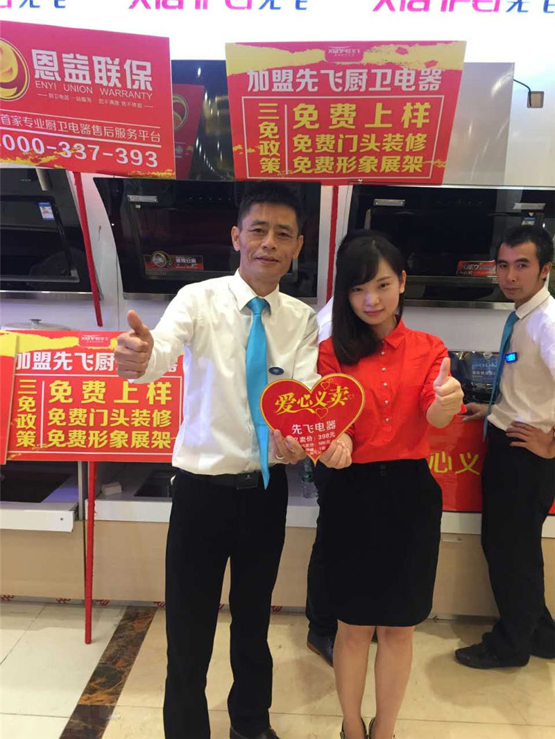 工作人员向在场的经销商讲解了产品优势及卖点等,并为他们详细的介绍了先飞厨卫对终端完善的产品线的支持,持续性终端指导,店面建设支持,终端推广支持,完善售后体系,系统培训支持等,解除了经销商对与先飞合作的后顾之忧。