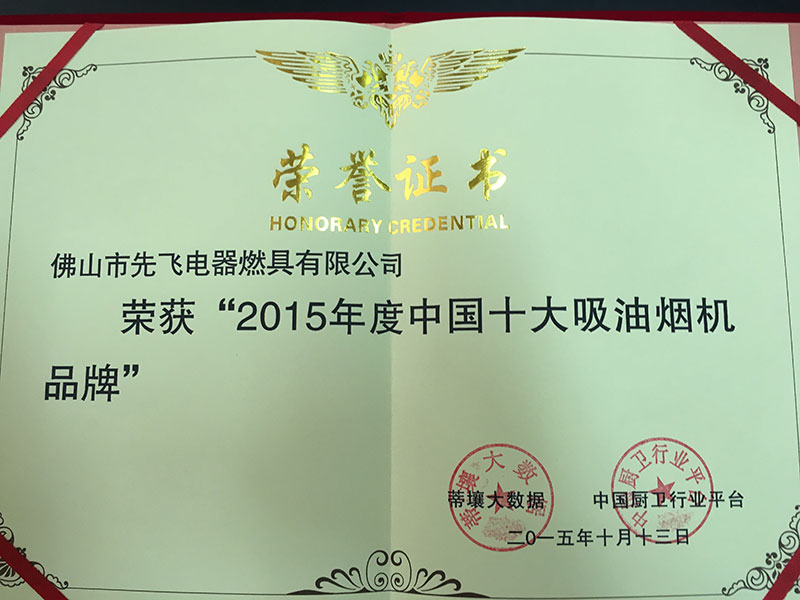 热烈祝贺先飞再次荣获中国吸油烟机十大品牌!