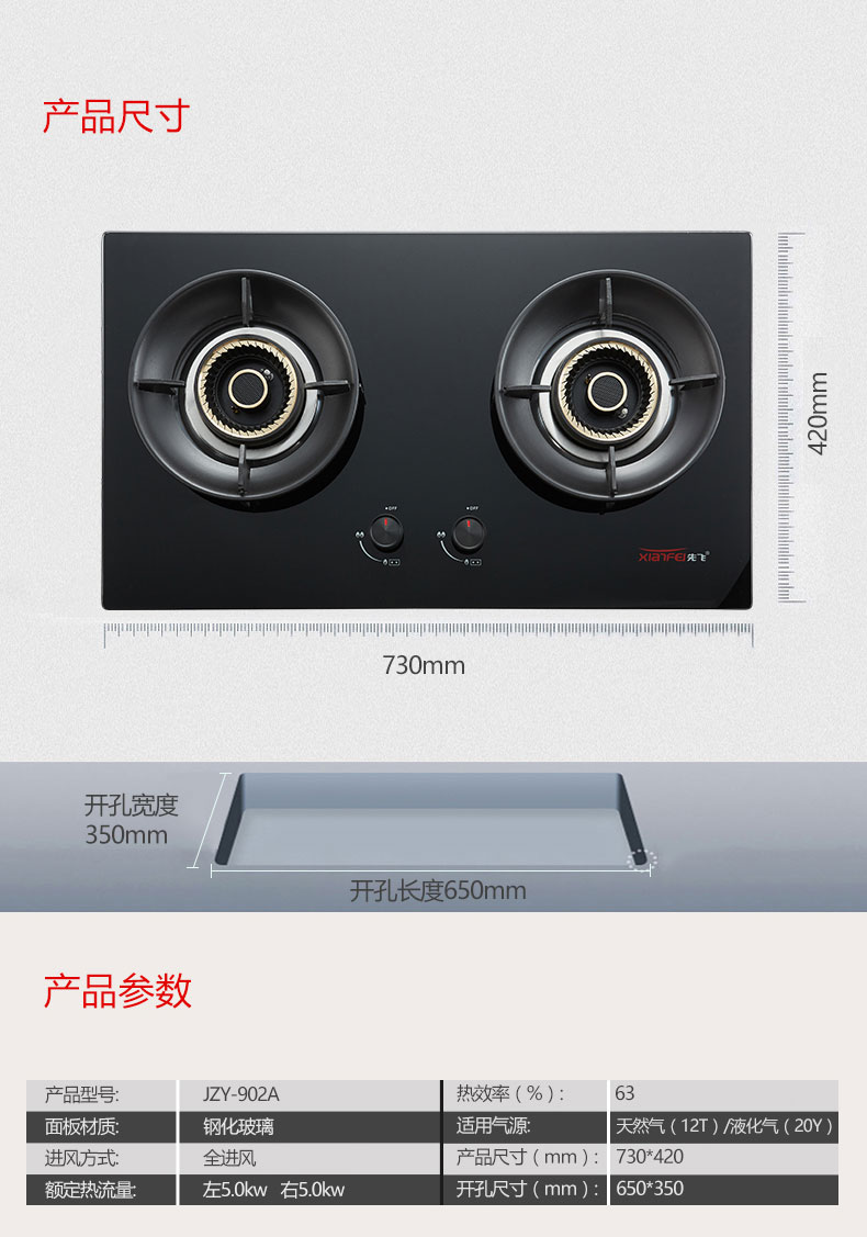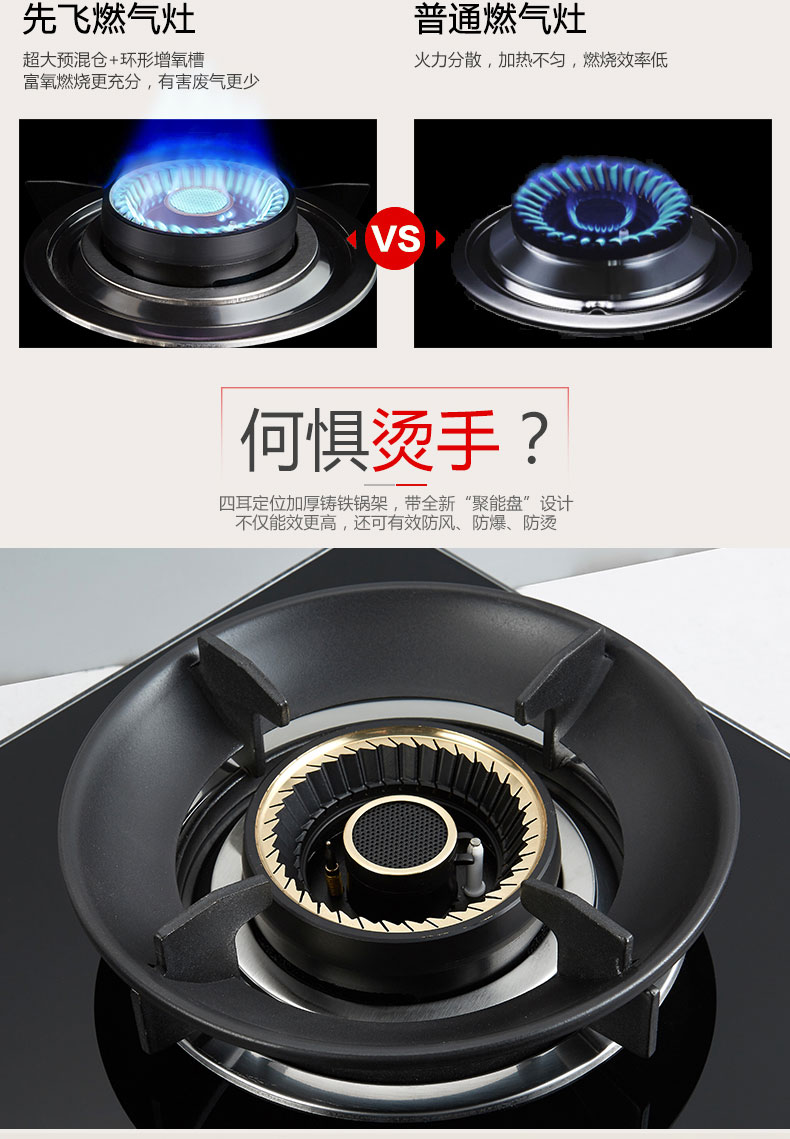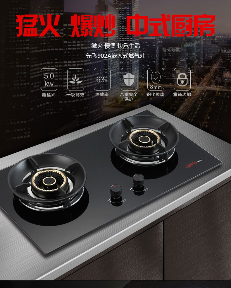 消费者说:要一级能效,要5.0Kw猛火,要聚能盘,要工艺领先,要高大上,要… … 于是先飞灶具902A应运而生(公司还同时推出同款单灶556)!先飞902A灶具以产品品质优越,技术参数完美,定价大众化的综合实力热火上市,必将成为先飞灶具中的标杆与领头羊!即日起公司已可接受全国客户订单,亲们还不赶快抓紧下单?