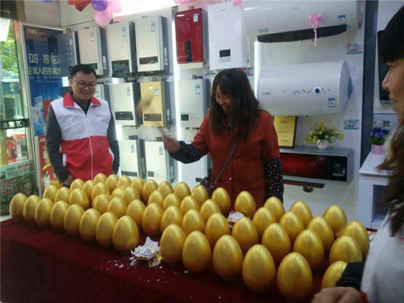 首先是优惠的价格力度,本次活动直接是平时销售价格五折,半价购买全场商品,真正让利;其次是丰富的礼品,现场砸金蛋,惊喜不断。