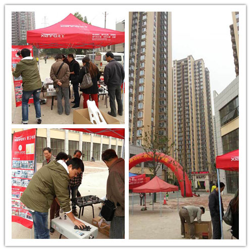 2、设点宣传:在小区内设点,放置太阳伞、拉条幅、布幅、X展架等很容易聚集人气的宣传物料;