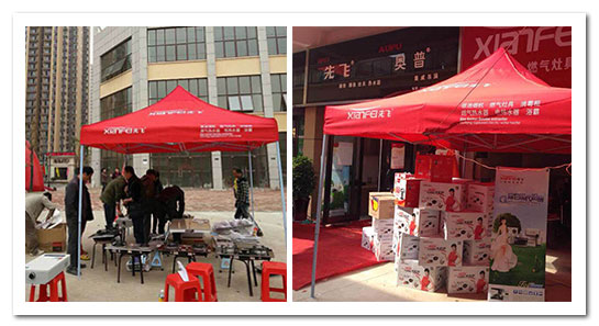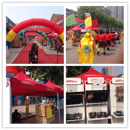 (2)形象展示物料:促销信息性不强,偏重于氛围装点营造的物料;例如帐篷、拱门、太阳伞、地毯、气球、促销台、彩带、彩旗、气模等;